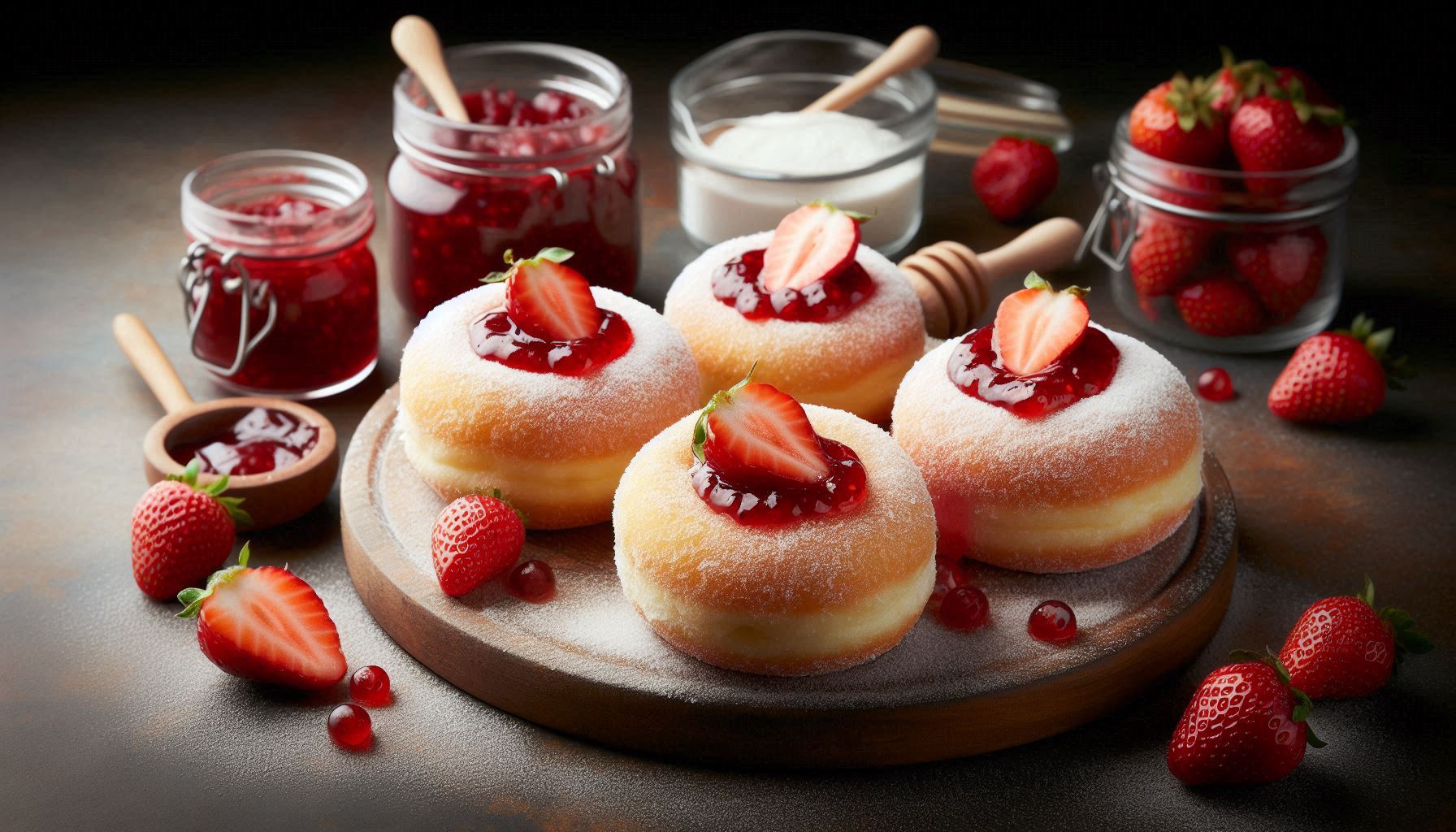 Instructions: Fry the donuts and fill them with a homemade or store-bought strawberry jam. Roll them in sugar for a sweet finish.