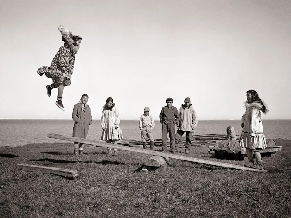 CIRCA 1929: Child is Joe Moses, Woman and child, NunivakBuyenlarge/Getty Images1949: A group of Alaskan teenagers play what looks like an extreme version of a seesaw.
