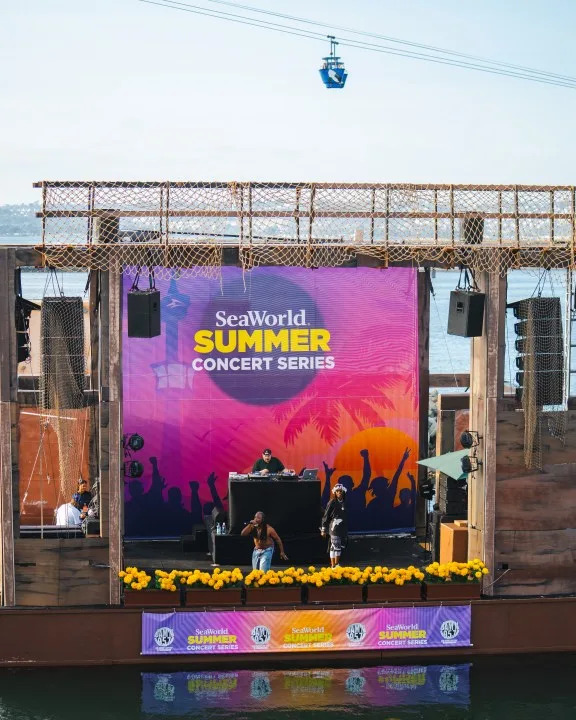 Young MCAdvertisementAdvertisement#_R_9rckr8lb2mav5ubsddbH1_ iframe AdvertisementAdvertisement#_R_hrckr8lb2mav5ubsddbH1_ iframe The amphitheater is located inside the park and is surrounded by the stunning water of Mission Bay, with fans filling the bleachers of the makeshift aquatic stage.