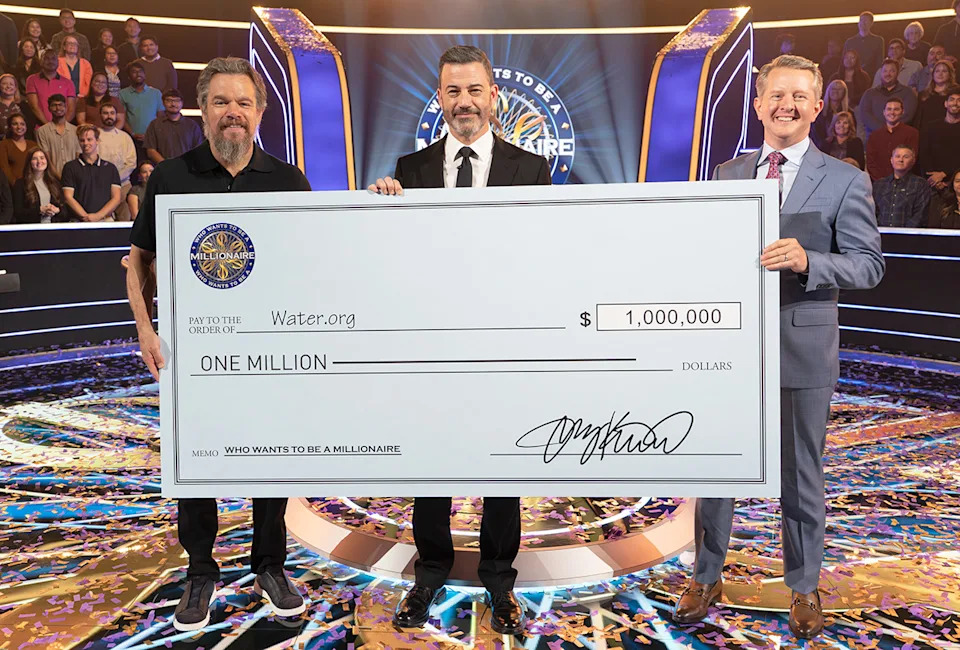 Damon, alongside Jeopardy! host Ken Jennings, competed in Wednesday’s primetime episode of Who Wants to Be a Millionaire, hoping to take home the $1 million grand prize for water.org, which Damon co-founded in 2009.