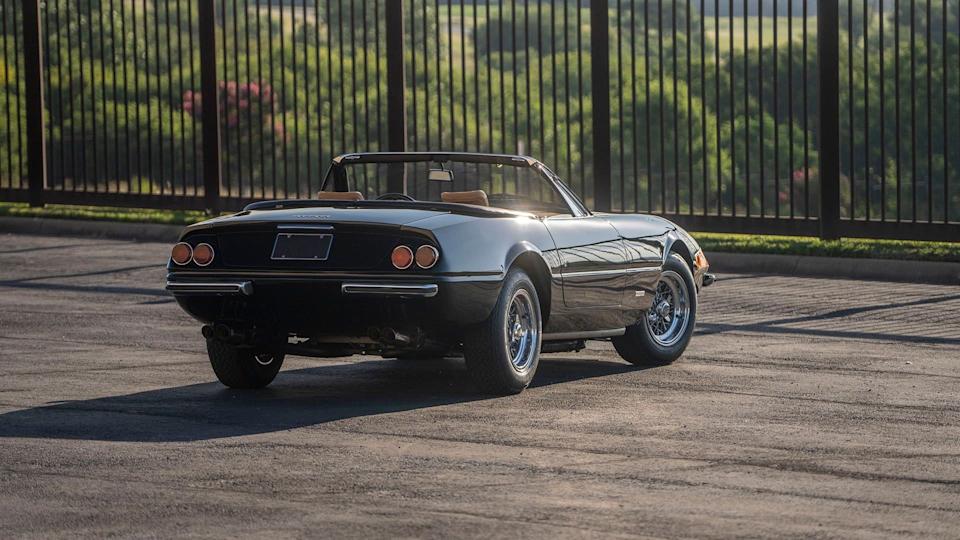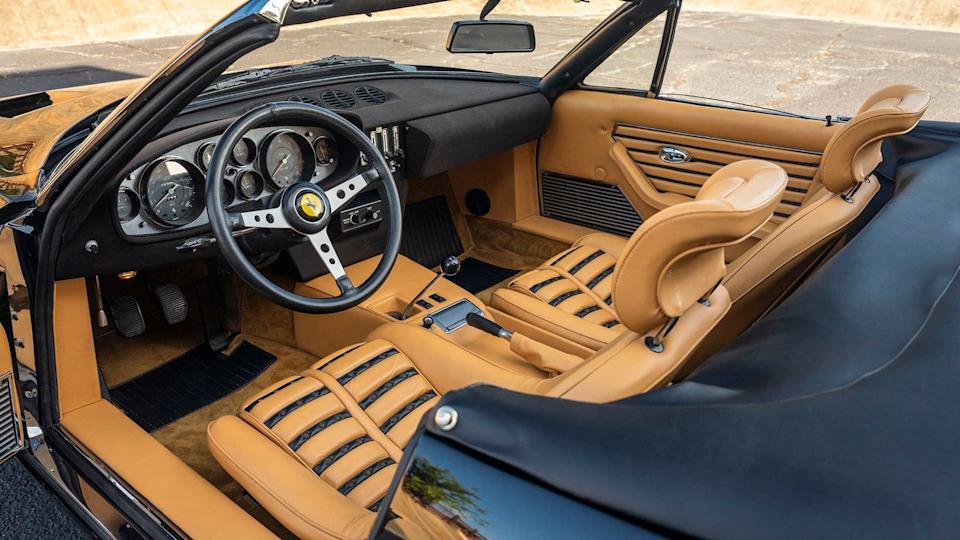 Under the hood remains the original 4.4-liter V12 engine, factory-rated at 352 horsepower. Both the engine and transaxle numbers match the original build sheet, according to noted Ferrari historian Marcel Massini. The car will be sold with extensive documentation, including its original warranty card, service records, manuals, and period photographs.