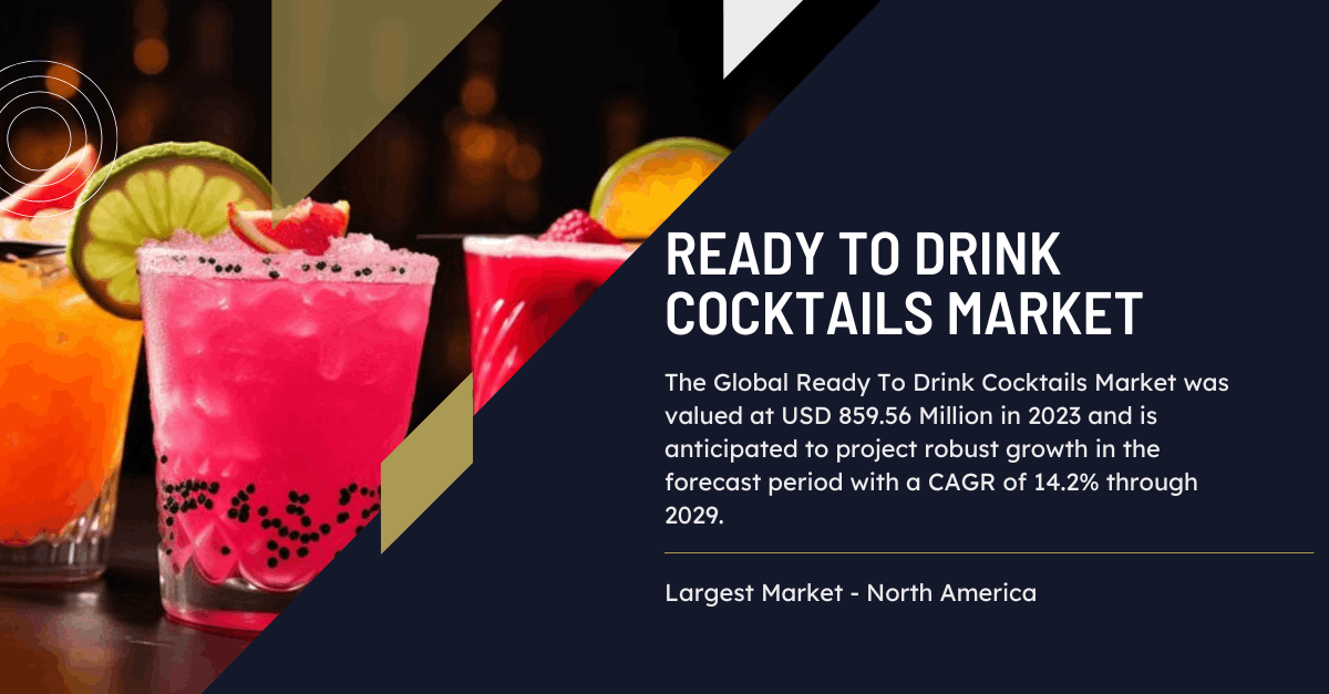 The global ready-to-drink (RTD) cocktails market has experienced rapid growth, driven by changing consumer habits and a rising demand for convenience and unique beverage experiences. Valued at USD 859.56 million in 2023, the market is projected to continue its upward trajectory with a compound annual growth rate (CAGR) of 14.2% through 2029.