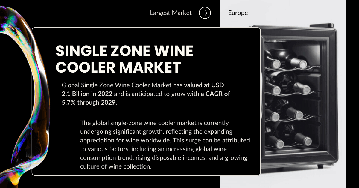 The global single-zone wine cooler market has witnessed significant growth in recent years, driven by an increasing appreciation for wine culture, rising disposable incomes, and technological advancements. According to the TechSci Research report, the market stood at USD 2.1 billion in 2022 and is expected to grow at a compound annual growth rate (CAGR) of 5.7% during the forecast period of 2025–2029.