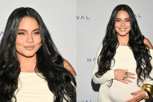 The “High School Musical” alum, who is expecting her second child with husband Cole Tucker, embraced mermaid-inspired styling with her cream-colored maxidress. The look featured an off-the-shoulder neckline and fitted silhouette, highlighting the actress’ baby bump.