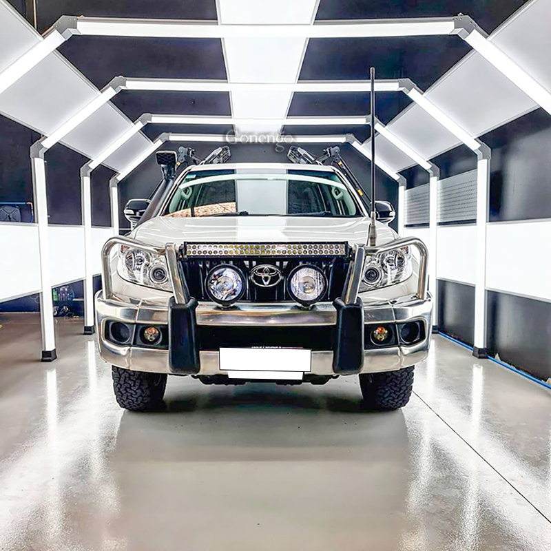 Auto detailing LED light tunnels are specialized lighting systems consisting of multiple LED lights arranged in a tunnel-like configuration. These setups provide uniform and shadow-free illumination, creating an environment where every surface of a vehicle is visible in precise detail. The use of such lighting ensures that imperfections, contaminants, and inconsistencies are immediately noticeable during detailing, waxing, or inspection.