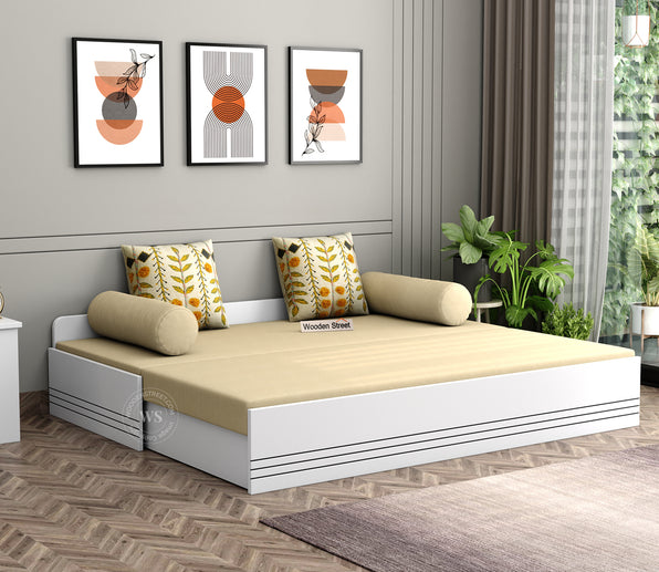 One of the biggest advantages of a wooden sofa cum bed is its space-saving quality. In apartments or homes with limited room, where every square foot counts, having a piece of furniture that performs double duty is invaluable. It eliminates the need for a separate guest bed or a bulky sleeper sofa, keeping the living area neat and uncluttered.