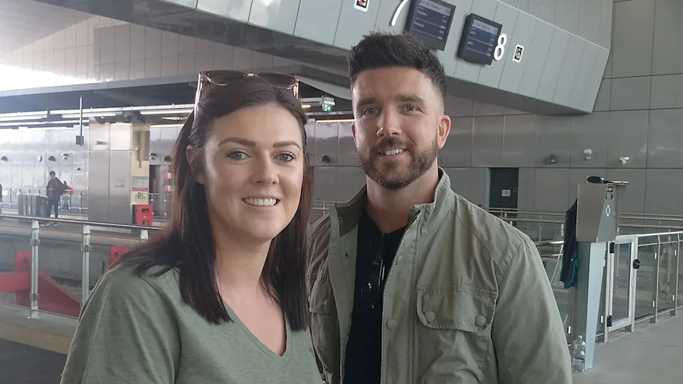 Catherine and William Robinson at Grand Central station before making the trip to Dublin [BBC]At Belfast's Grand Central Station, some fans were already making their way to Dublin.