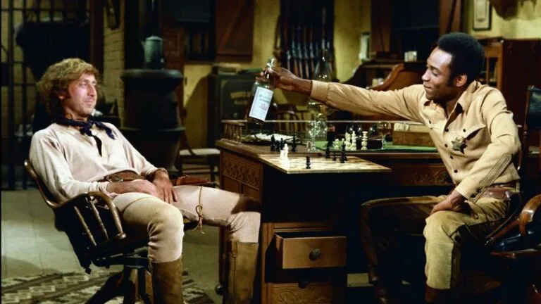 Cleavon Little (left) and Gene Wilder in Blazing Saddles. Warner Bros.Blazing Saddles is a 1974 Western satire about a Black sheriff named Black Bart (Cleavon Little) appointed to save a town with the help of the drunken gunslinger the Waco Kid (Gene Wilder). The film ridicules Western tropes and racial bigotry, while firing off both cheap and brilliant jokes and pushing the 1970s limits of acceptable language.