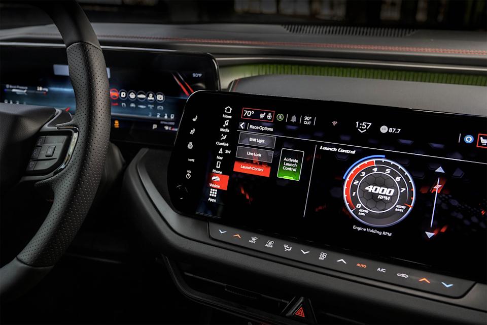 Power is directed through an eight-speed automatic transmission to all four wheels. A standard limited-slip differential helps manage torque distribution, and features like Line Lock and Launch Control help even novices get off the line fast. Dodge quotes a 3.9-second 0-60 launch time and 12.2-second quarter-miles.