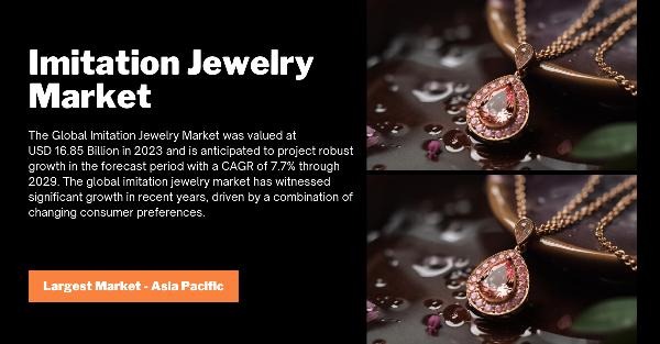 According to a recent report by TechSci Research titled "Imitation Jewelry Market - Global Industry Size, Share, Trends, Competition Forecast & Opportunities, 2029F," the global imitation jewelry market was valued at USD 16.85 billion in 2023 and is projected to grow at a compound annual growth rate (CAGR) of 7.7% during the forecast period leading up to 2029.