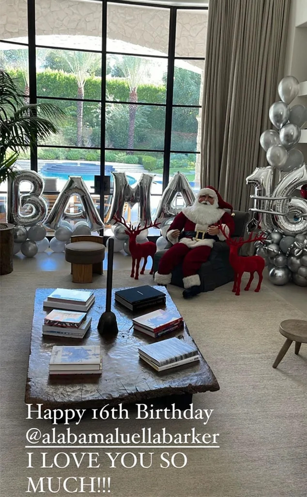 For Alabama's 16th birthday in December 2021, Kourtney and Travis surprised her with balloons that spelled out "BAMA 16."
