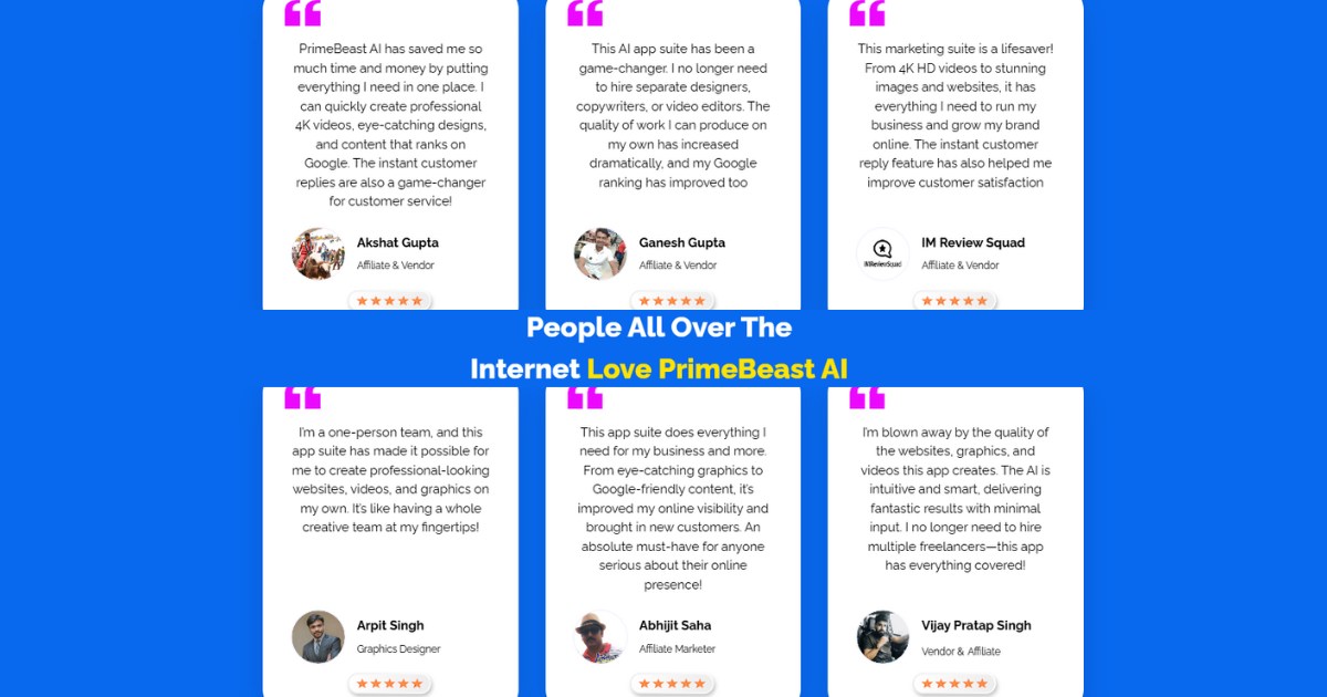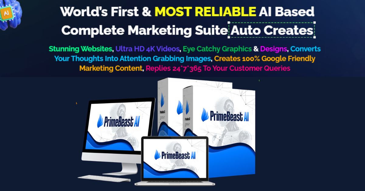 PrimeBeast AI Is The World’s First All-in-One AI Business Suite That Does It All:Create Professional, Mobile-Friendly Websites in 60 SecondsGenerate Stunning Videos Using Just a Keyword in 60 SecondsDesign Eye-Catching Graphics to Boost Engagement by 10XCraft 100% Unique Marketing Content to Rank Higher on GoogleProvide Instant AI-Powered Customer Replies 24/7Drag-and-Drop Editor to Build Visually Stunning WebsitesReplaces 20+ Expensive, Complicated Marketing AppsBuilt-In SEO Optimization to Maximize Search Engine VisibilityReady-to-Use Templates for Social Media, Ads, and Explainer VideosPre-Made Templates for Ads, Logos, Banners, and MoreFully Customizable with Drag-and-Drop Options for Fonts, Colors, and LayoutsGenerates Blog Posts, Ad Copies, Social Media Content, and MoreAccess 7 Business-Boosting Tools from a Single DashboardSave Money on Costly, Recurring Marketing PlatformsAutomates Customer Query Replies to Save TimeMonitors Campaigns, Website Traffic, and Customer EngagementIn-Depth Analytics to Track Content Performance and ROILaunch Your Own Profitable Marketing Agency BusinessFree Built-In SSL Certificate to Secure Your WebsitesSay Goodbye to Expensive E-Commerce Builders Like Shopify24/7 Premium Support for On-Time SolutionsCommercial License Included for Unlimited Earning PotentialWith this all-in-one suite, you can save money, boost your business growth, and automate your marketing efforts effortlessly!
