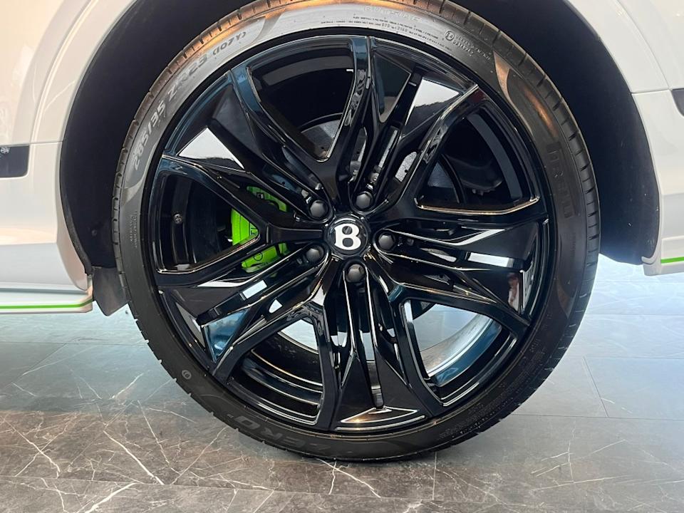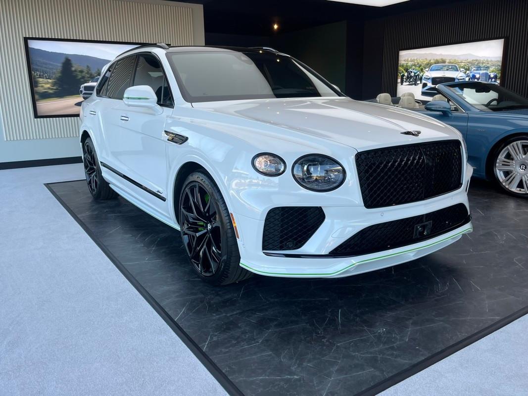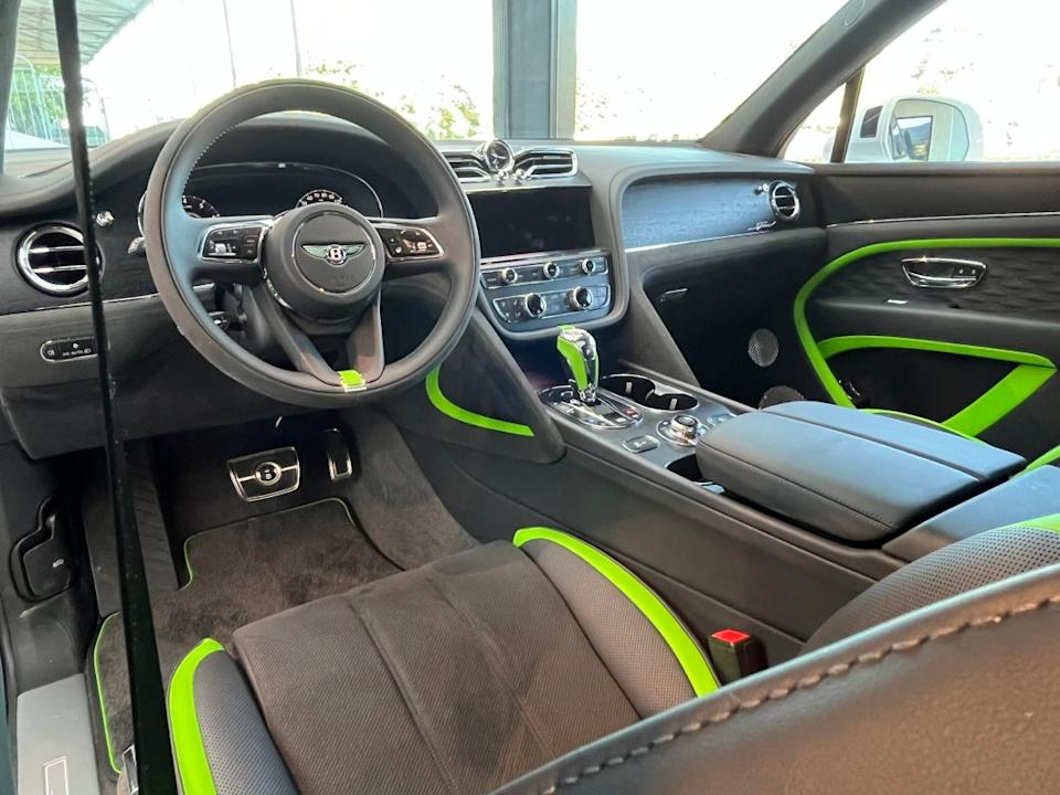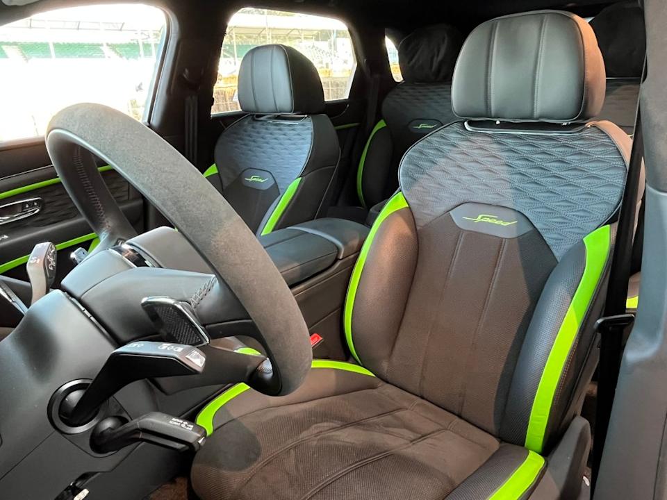 Adam Lynton/Autoblog While one Bentayga was chasing records, the other was charming guests invited into Bentley's stunning two-story show stand with its bold design. The white Bentayga Speed featured all the hallmarks of the updated model, including dark-tinted trim, a contrasting black roof, and Speed badging. It also wore optional 23-inch wheels, revealing massive carbon ceramic brakes underneath. What stood out, though, were the bright green accents. They lined the lower bodywork, popped from behind the wheels, and continued inside the cabin. Green stitching traced the quilted leather seats, door panels, steering wheel, gear shifter, and even the center console. It added just the right amount of over-the-topness to an already luxurious space.