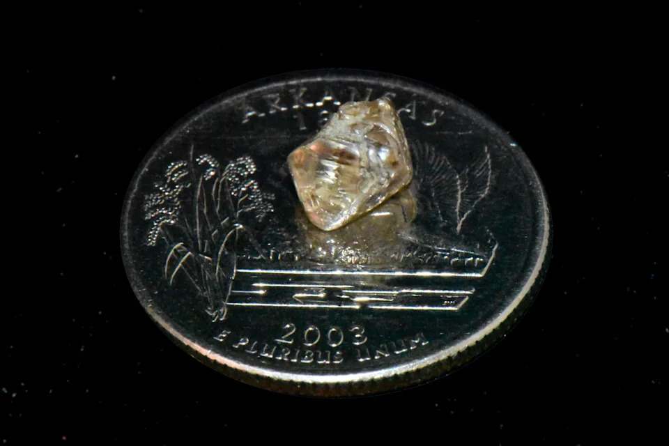 A 2.30-carat white diamond a woman found at Crater of Diamonds State Park in Arkansas.The park has a Diamond Discovery Center, where Fox headed after she found the diamond. Staff told her she’d found a white or colorless diamond that weighed more than two carats.
